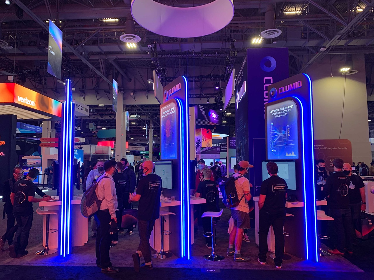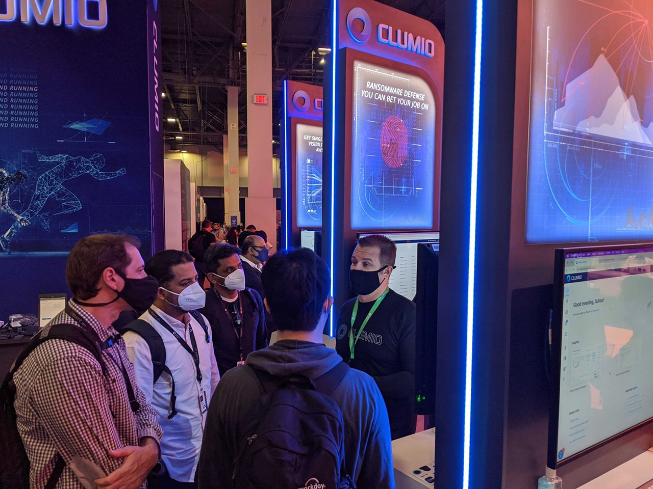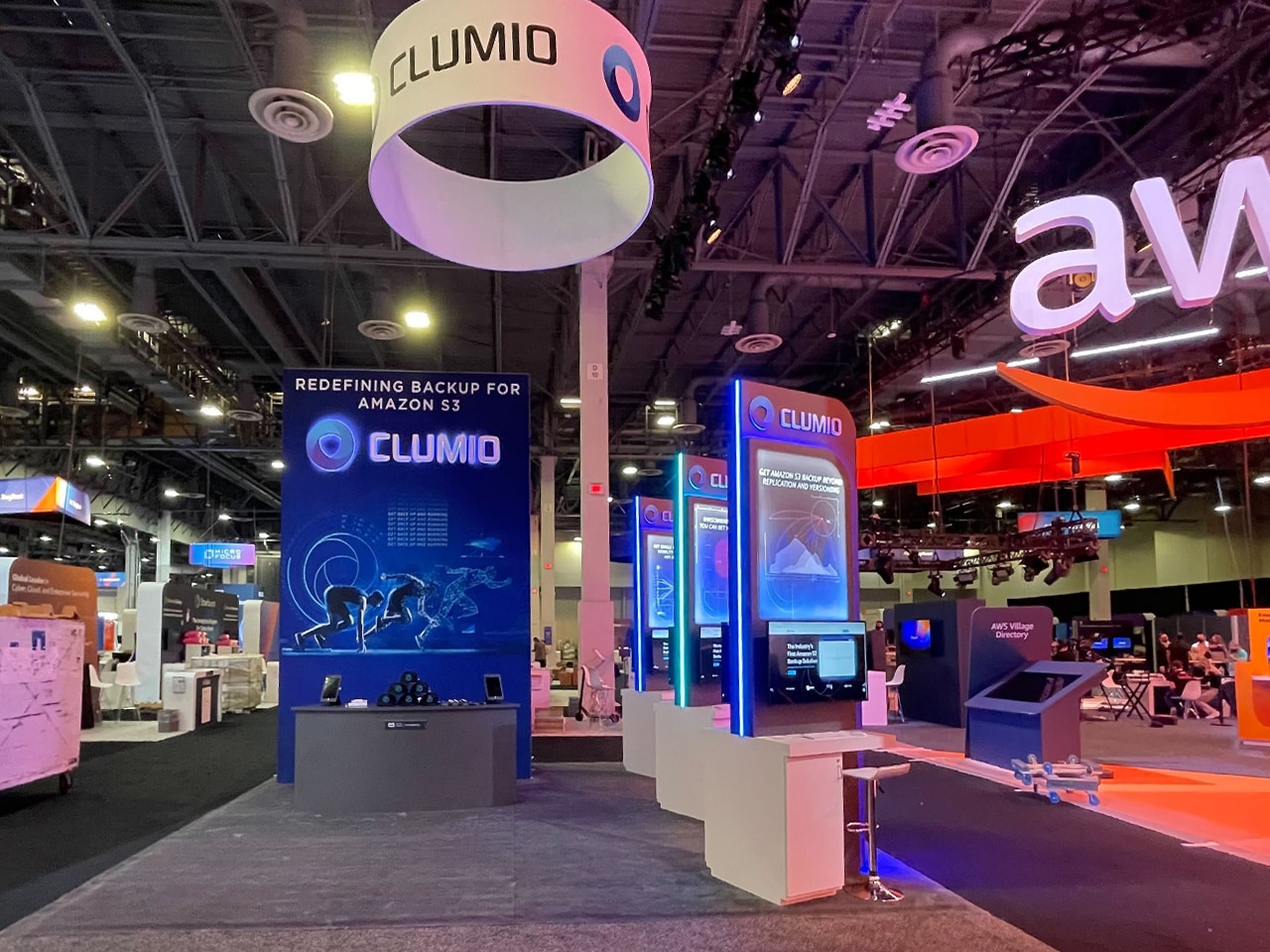 AWS re:Invent is an annual conference for cloud computing professionals, and a key event for exploring the latest AWS innovations and trends. For this conference, Clumio's Marketing team embraced a theme focused on re-emerging from the COVID pandemic, with the slogan “Get Backup and Running,” cleverly referencing both their core data backup service and the broader idea of global recovery. From a design perspective, the brief called for a Tron-inspired visual identity that aligned with Clumio's newly refreshed brand.