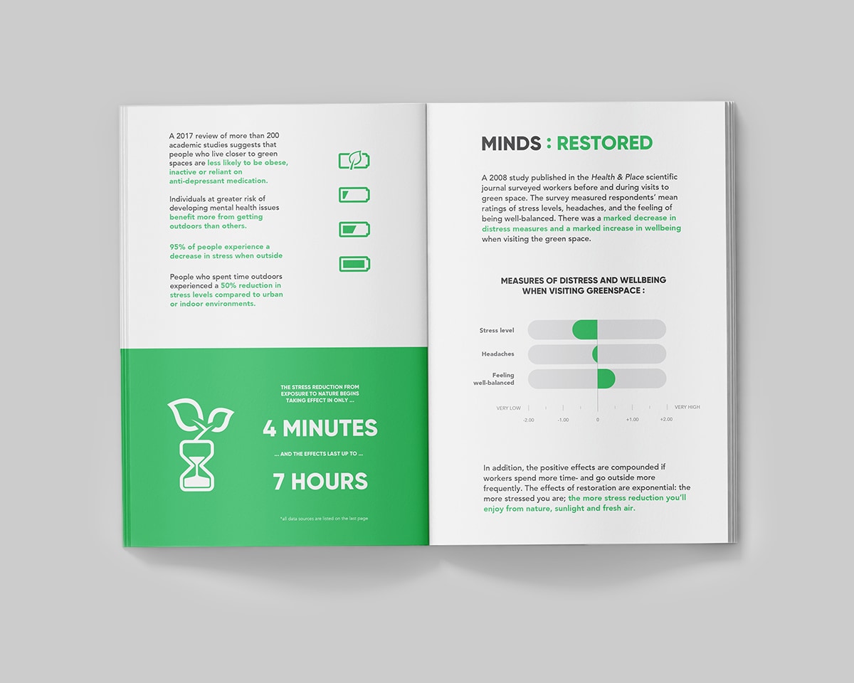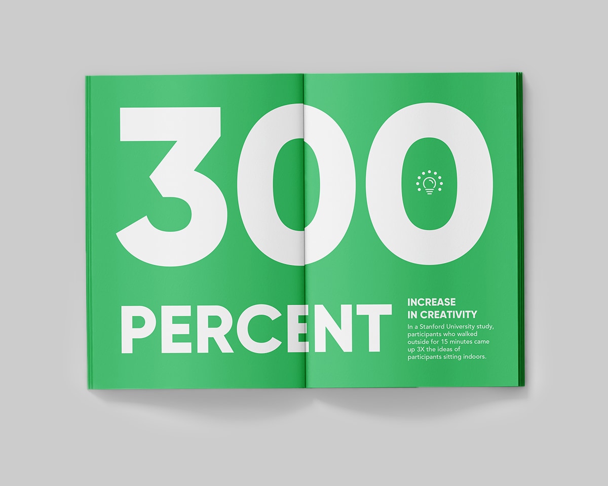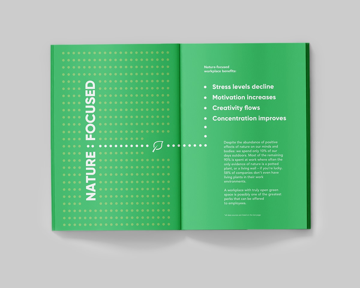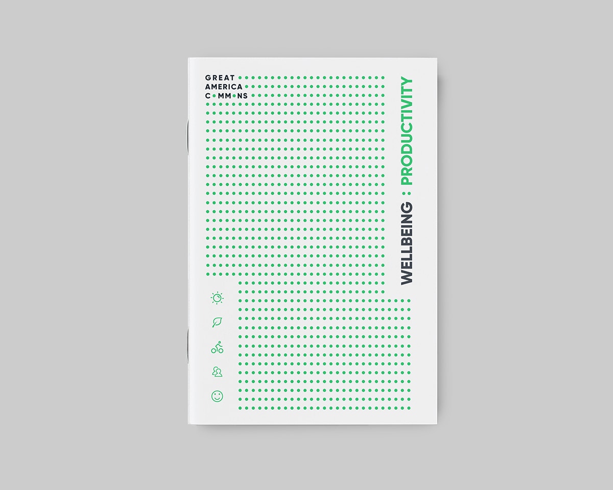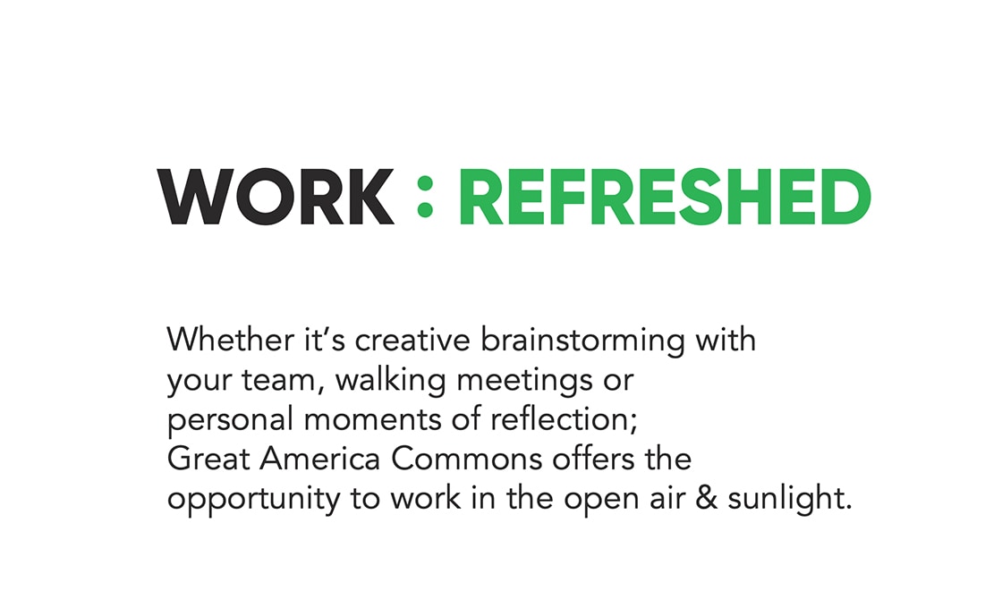 Rather than simply highlighting Great America Commons' real estate attributes, I framed them as drivers of employee wellness, productivity, and growth. During the pandemic, wellness became a priority, and the campus offered over 100,000 square feet of outdoor space—an ideal setting to emphasize the health benefits of nature. To support this, I researched, wrote, and designed an informational booklet as content marketing to educate prospective tenants. I also conducted a naming process for the large foodhall building in the campus. The name Harvest Hall was chosen to reflect the idea of abundance but also as a nod to the landlord: Harvest Properties.