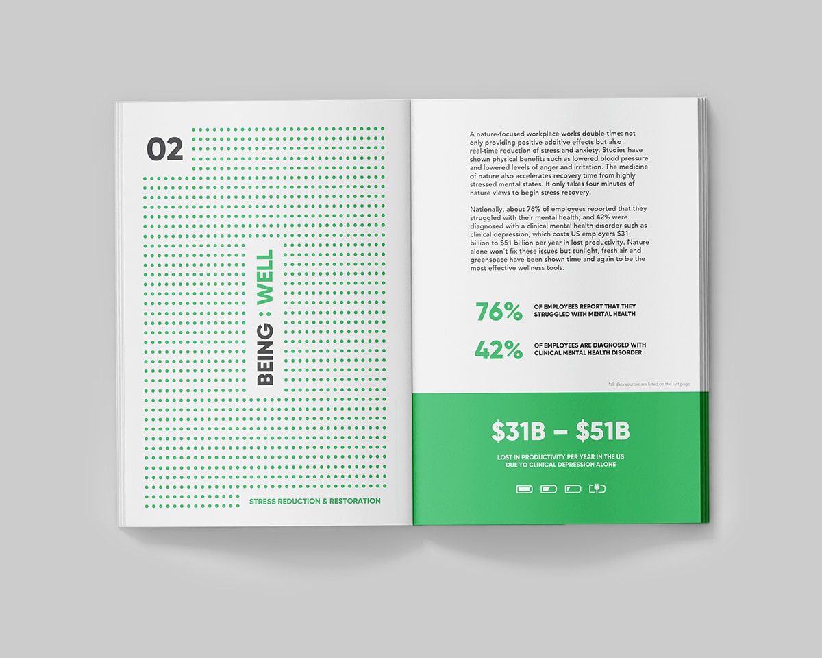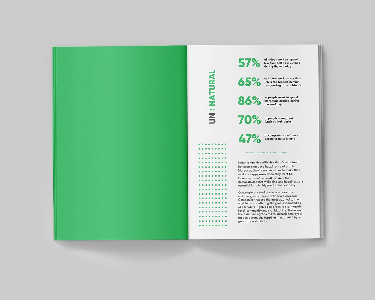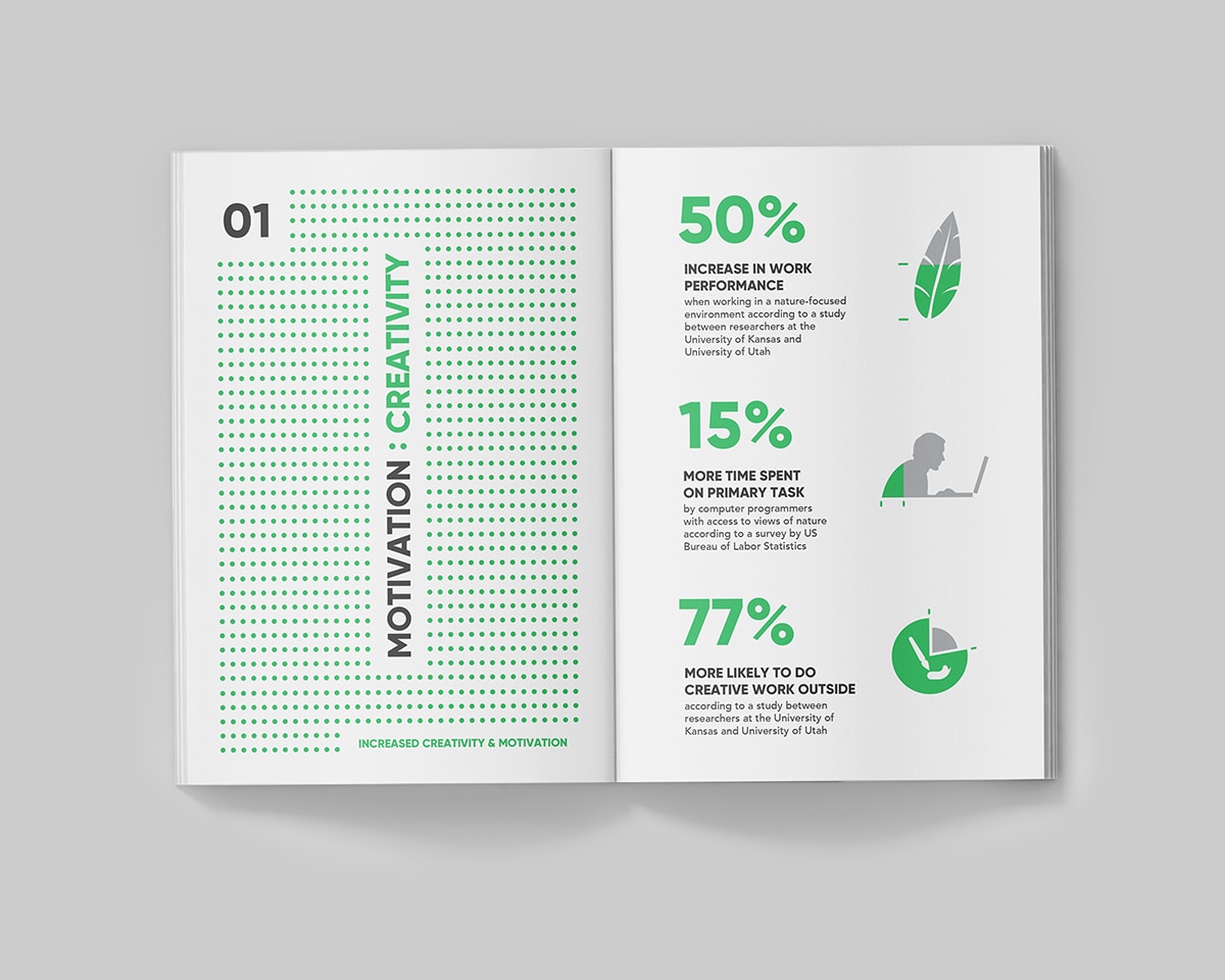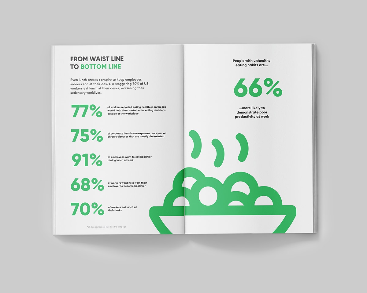 Rather than simply highlighting Great America Commons' real estate attributes, I framed them as drivers of employee wellness, productivity, and growth. During the pandemic, wellness became a priority, and the campus offered over 100,000 square feet of outdoor space—an ideal setting to emphasize the health benefits of nature. To support this, I researched, wrote, and designed an informational booklet as content marketing to educate prospective tenants. I also conducted a naming process for the large foodhall building in the campus. The name Harvest Hall was chosen to reflect the idea of abundance but also as a nod to the landlord: Harvest Properties.